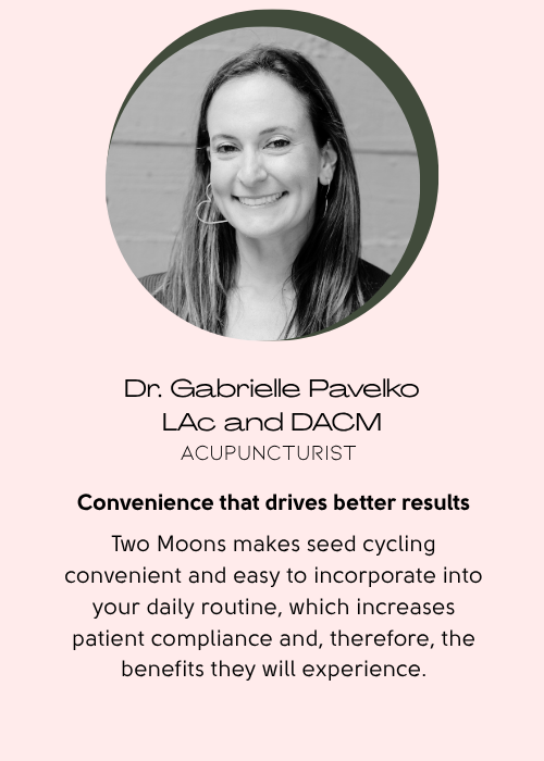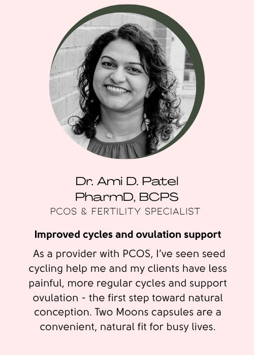 Each Two Moons Seed Cycle Capsule Bundle provides a two-month supply and includes two bottles, each containing 56 capsules: